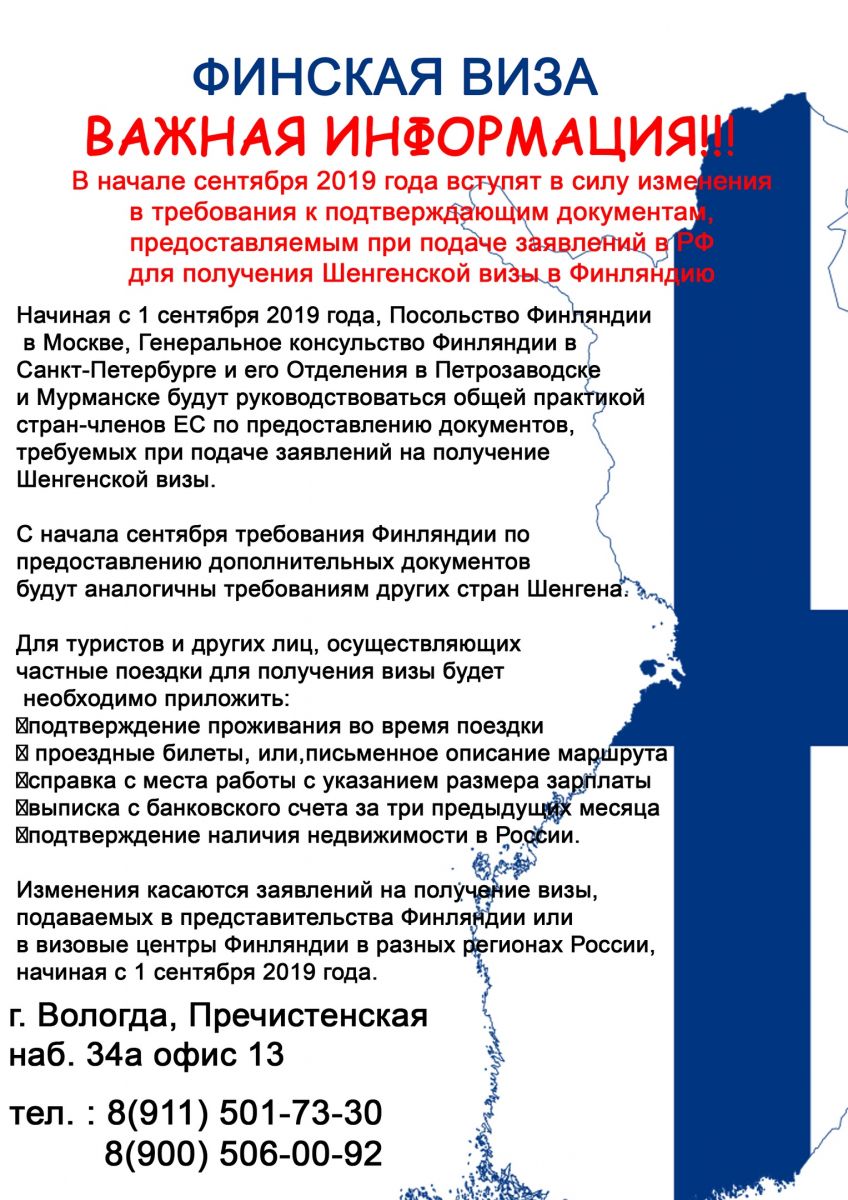 В начале сентября 2019 года вступят в силу изменения в требования к подтверждающим документам, предоставляемым при подаче заявлений в Российской Федерации для получения Шенгенской визы в Финляндию